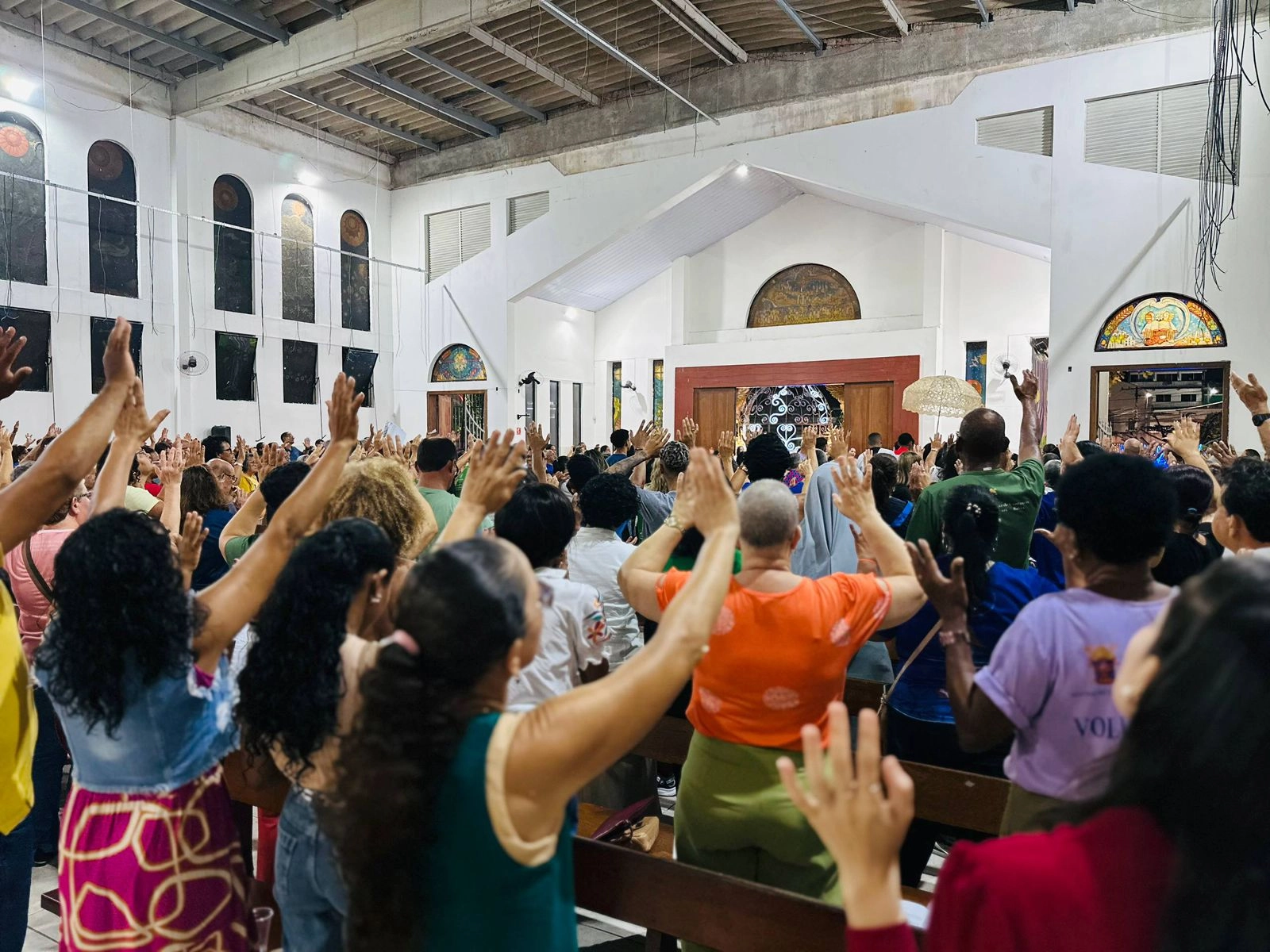 O novenário deste ano traz como tema central o convite para que os fiéis percorram os caminhos da missão e construam a paz. Nesta quinta noite, a reflexão foi conduzida a partir da subtemática “Testemunhas da fé em meio às dúvidas”, tendo como pregador o cônego Paulo Bitencourt, pároco da Paróquia Cristo Ressuscitado, no Inocoop, que destacou a importância do testemunho cristão diante dos desafios da atualidade.