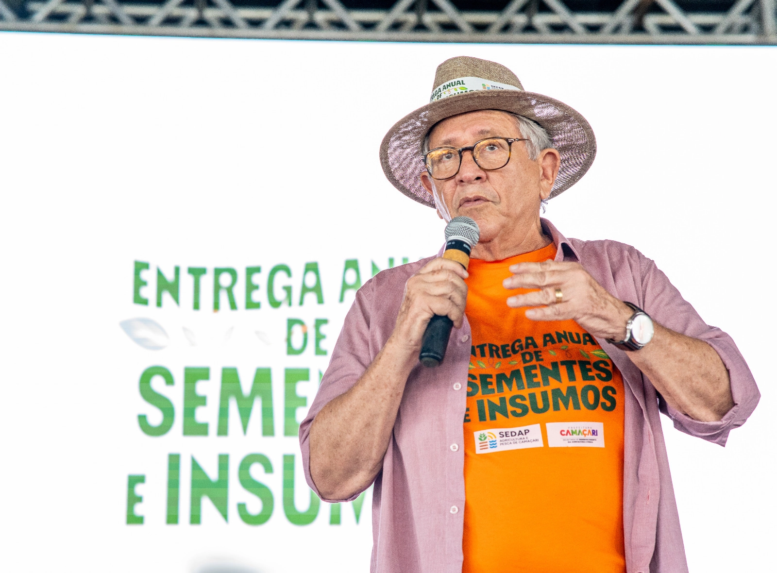 Foram entregues sementes de milho, feijão e amendoim, totalizando 10 toneladas, sendo destinado 1,5 kg de cada tipo por produtor. A partir desta quinta-feira (5) será iniciada a distribuição nas propriedades de calcário e adubo do tipo torta de mamona, sendo o total de 50 e 32 toneladas, respectivamente. No evento, os participantes receberam ainda um kit contendo chapéu, camisa e sacola.