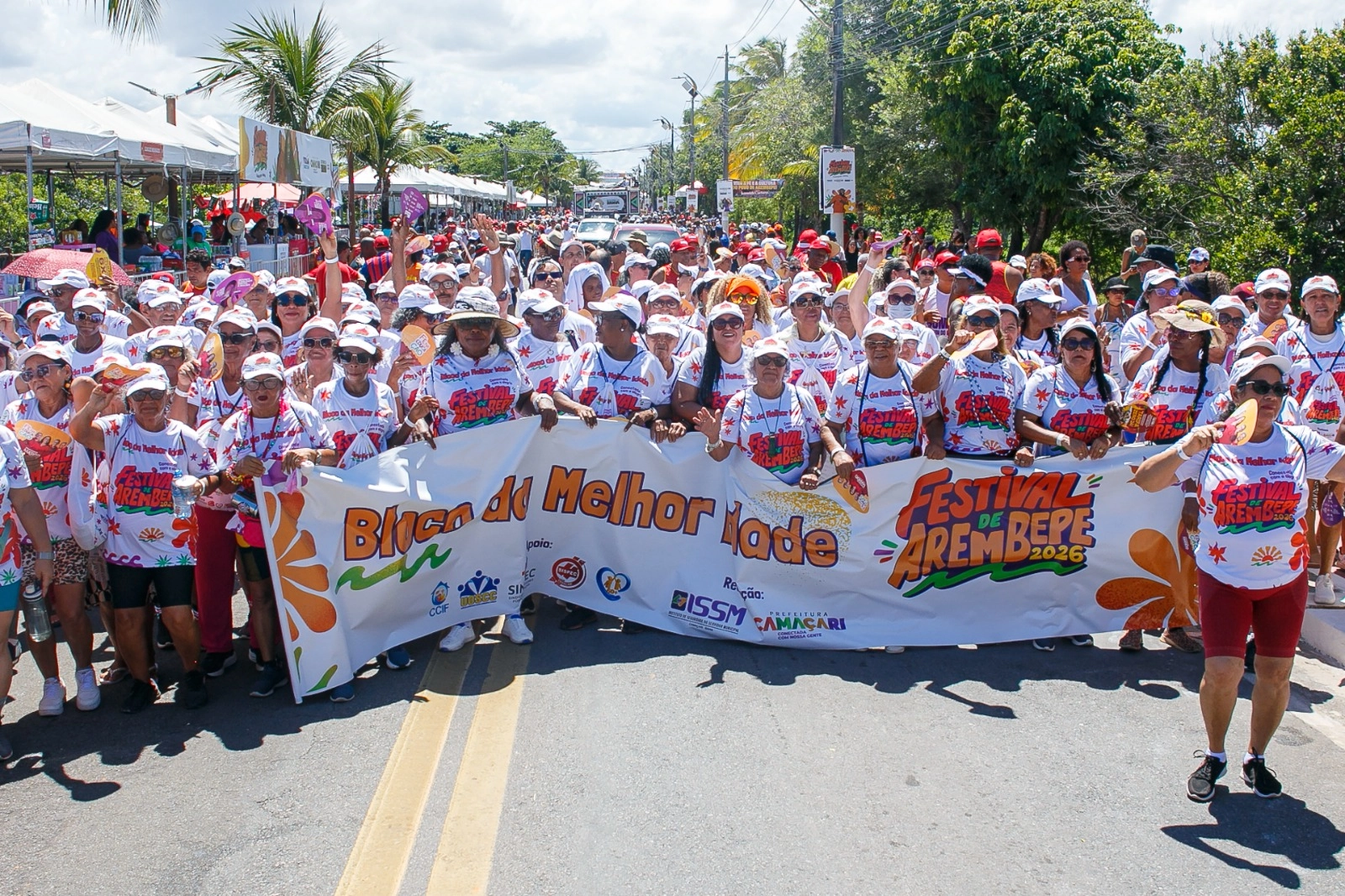 A participação do Bloco da Melhor Idade no cortejo do Festival de Arembepe 2026 contou com o apoio da Secretaria de Educação de Camaçari (Seduc), e dos sindicatos das Professoras e Professores da Rede Pública Municipal de Camaçari (Sispec) e dos Servidores Públicos do Município de Camaçari (Sindsec).