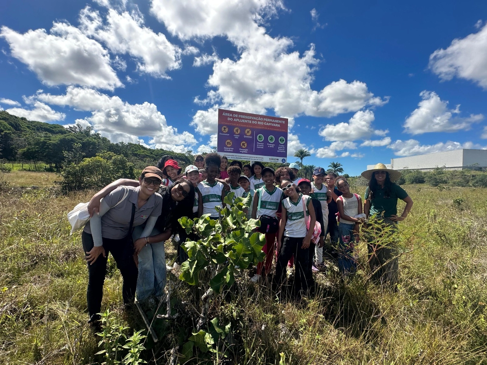 Em alusão ao Dia da Floresta, celebrado em 21 de março, a Secretaria de Desenvolvimento Urbano e Meio Ambiente de Camaçari (Sedur) promoveu, nesta quinta-feira (19), uma ação de educação ambiental com estudantes do Centro Educacional Hidelbrando Lima Filho, em uma área de preservação permanente (APP) de um afluente do Rio Capivara, localizada no bairro Loteamento Montenegro.